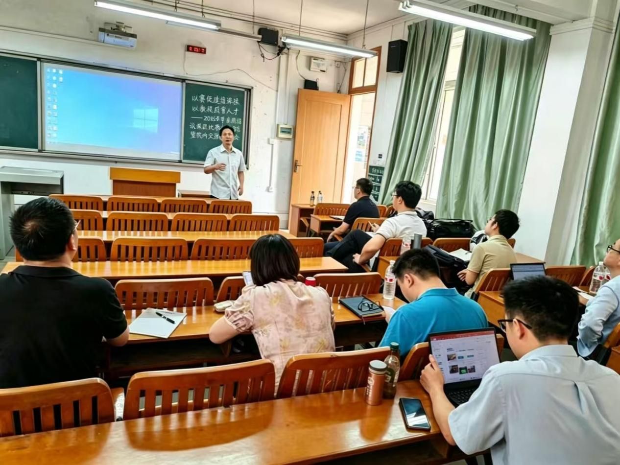 本次初赛严格对标校级比赛规范,坚持以学生发展为中心,围绕课程定位、教学设计、实施评价与持续改进等核心环节,突出OBE理念、AI技术辅助教学、实践育人与课程思政深度融合,全面检验教师课程建设能力。覃云、李鹏、许杰、张利国四位教师依次登台,系统汇报课程建设思路、实践路径与育人成效,充分展现学院青年教师深耕教学、锐意创新的优良教风。