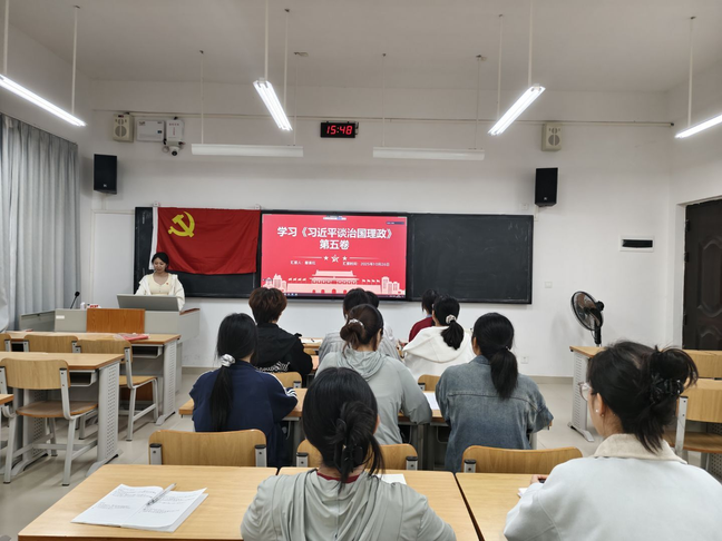 房地产开发与管理系本科生党支部在实验楼2—B104开展《习近平谈治国理政》第五卷专题党课学习。本次大会由党支部书记鄢素红同志主持,支部全体党员参加。