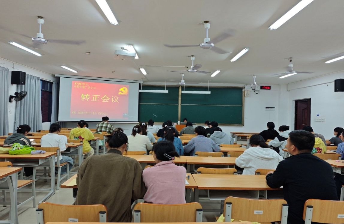 土地资源管理本科生第二党支部在实验楼2C-203教室召开转正会议,讨论预备党员曾庆龄等4名同志的转正问题。会议由党支部书记黄琴同志主持,全体党员参加本次会议。