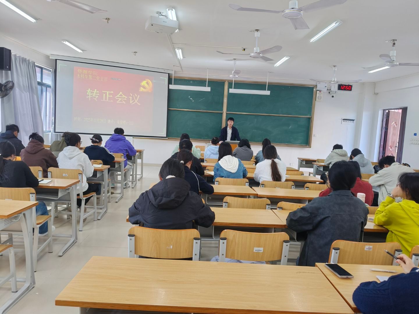 土地资源管理系本科生第二党支部在实验楼2C-203教室召开转正会议,讨论预备党员黎君昊同志的转正问题。会议由党支部书记黄琴同志主持,全体党员参加本次会议。